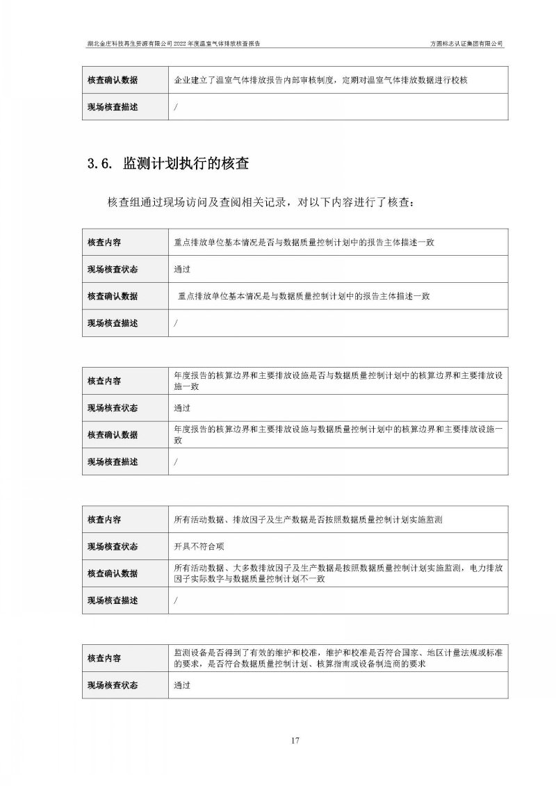 核查報(bào)告(發(fā)電行業(yè))